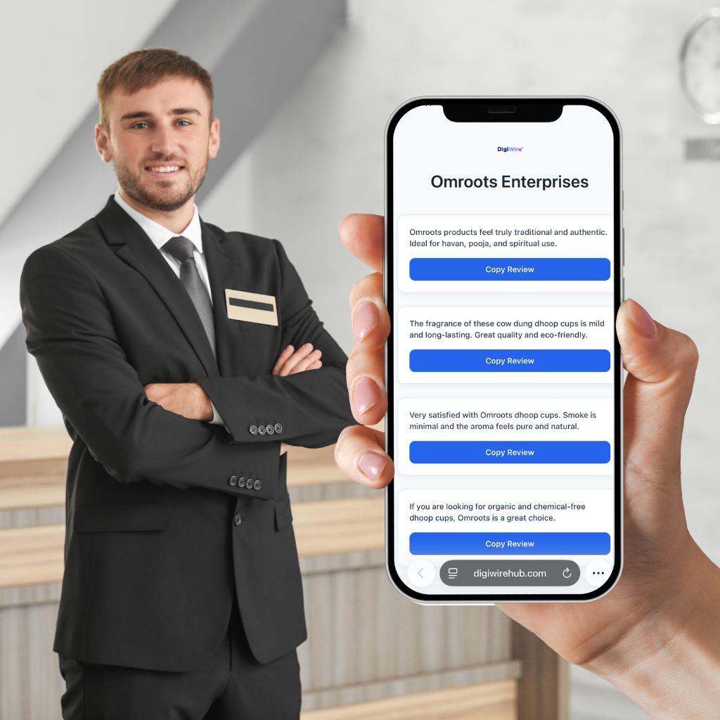 Your Google review page opens instantly with Digiwire’s smart, SEO-friendly review suggestions.